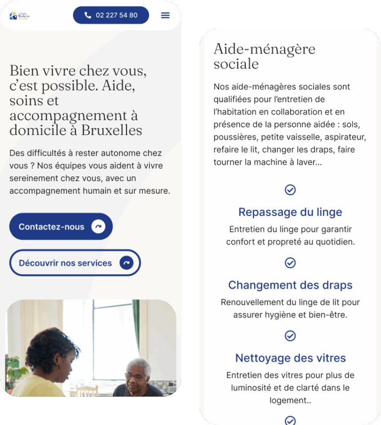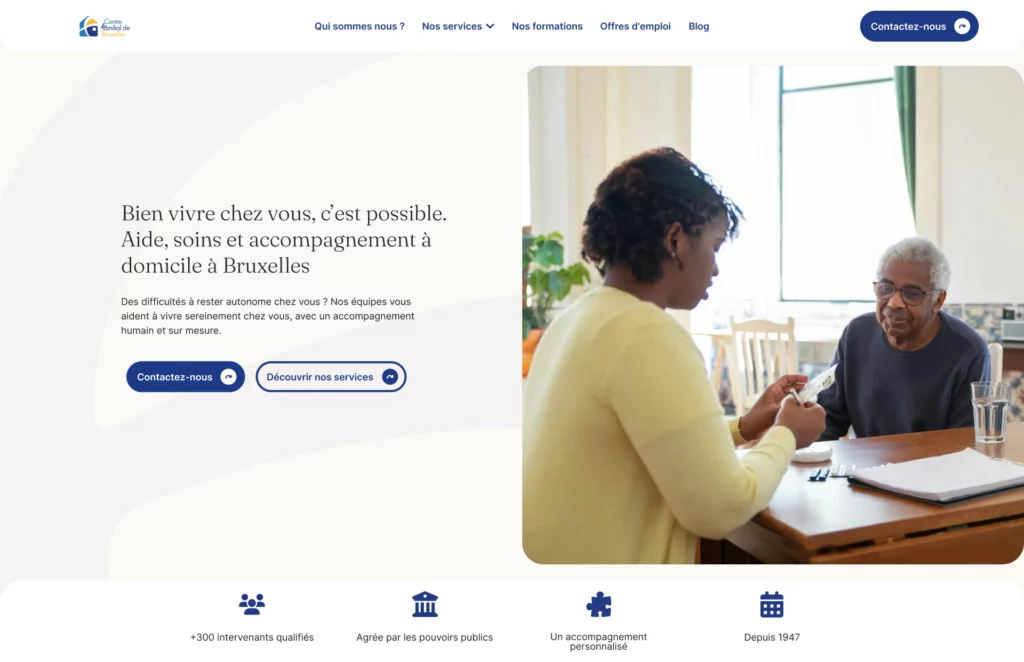 The CFB (Centre Familial de Bruxelles) is a home care service that supports elderly, vulnerable, or isolated individuals in their daily lives across Brussels and its surroundings.